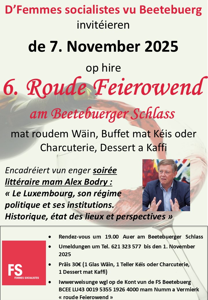 Mat dëse Wäerter gi mir Mënschen de néidegen Halt an halen d’Gesellschaft zesummen. Eng staark sozial Demokratie gëtt et nëmme mat eis!